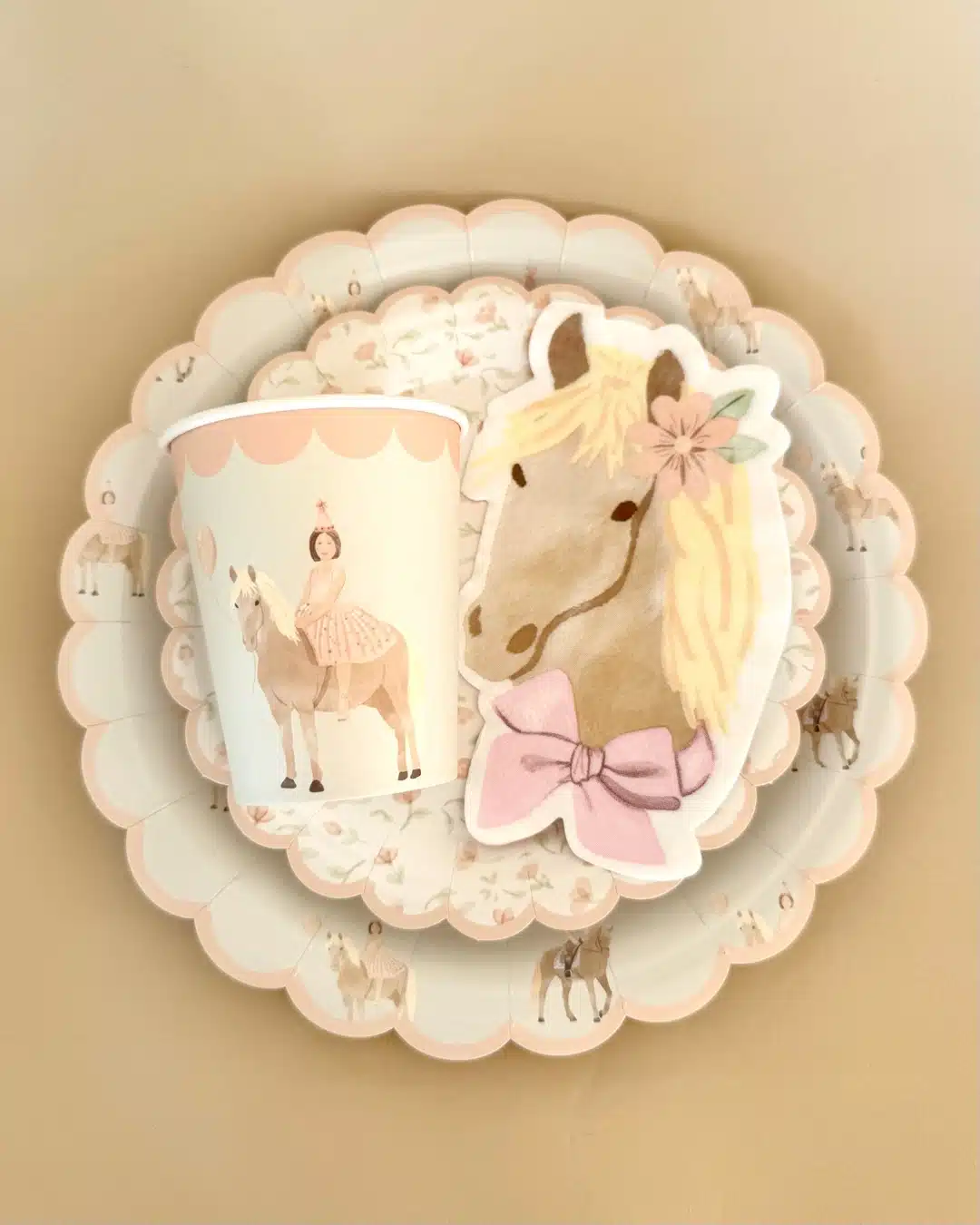 Deze set bevat 8 bekers, ideaal voor kleine tot middelgrote feestjes. De zachte pastelkleuren en het thematische ontwerp maken de bekers zowel geliefd bij jonge paardenfans als bij ouders die een stijlvolle en samenhangende paarden feestversiering willen.