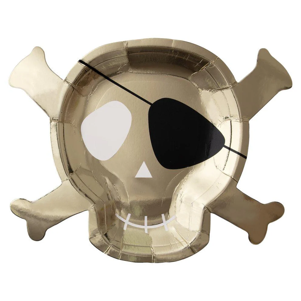 Maak je piratenfeest compleet met de piraten bordjes van Meri Meri! Deze set van 8 feestelijke borden is perfect voor jonge avonturiers die hun tafel willen vullen met lekkernijen en een lekker stuk piraten taart! De borden zijn ontworpen in de vorm van een piratenhoofd in het gouden m et een ooglapje, wat zorgt voor een speelse en stoere uitstraling.
